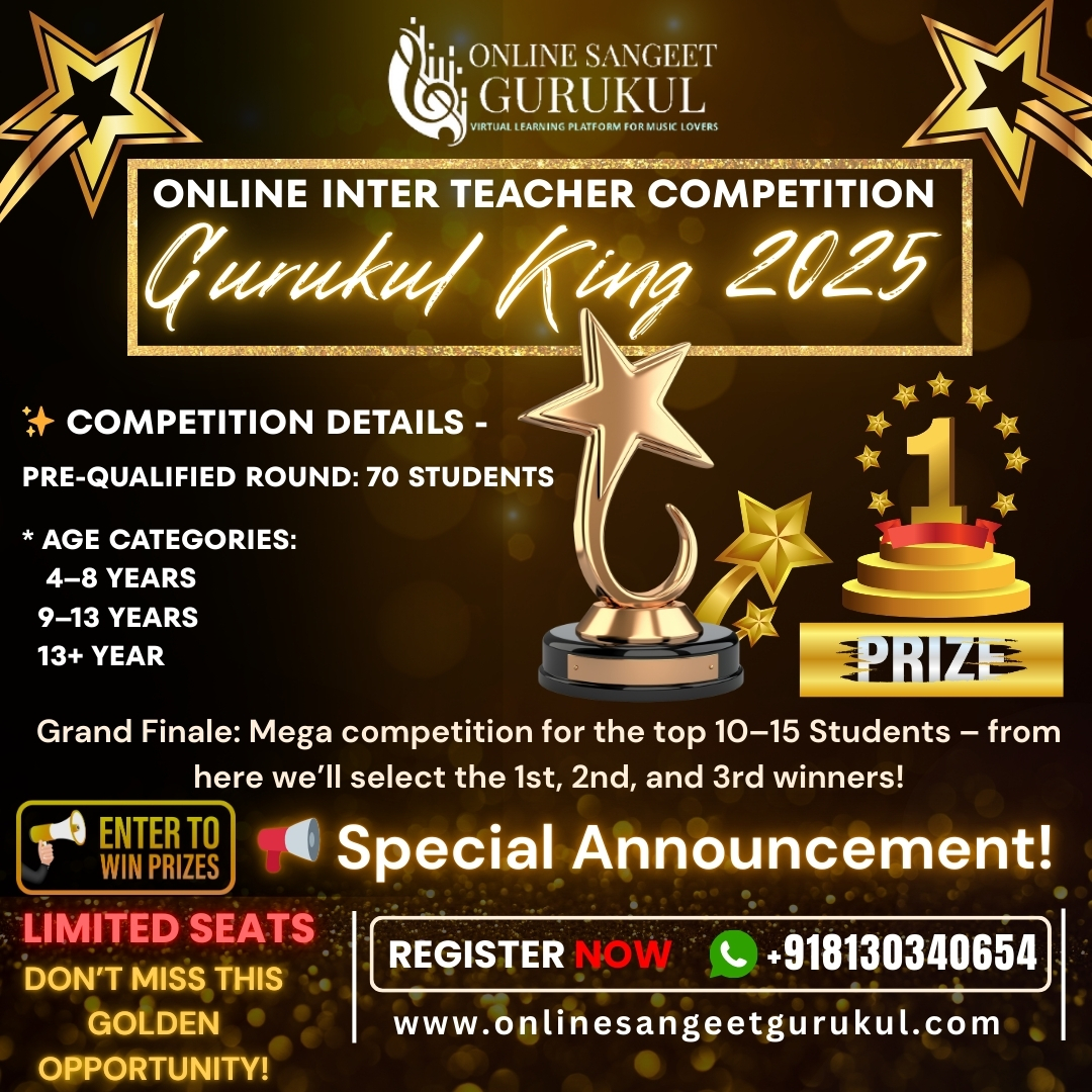 Namaste and a warm welcome to Online Sangeet Gurukulβ a place where voice, rhythm, passion, and dreams come together to create the true essence of music.